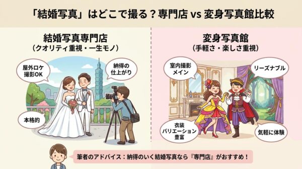 「結婚写真」は変身写真館よりも「結婚写真専門店」で撮ったほうが、納得のいく仕上がりになると思います。