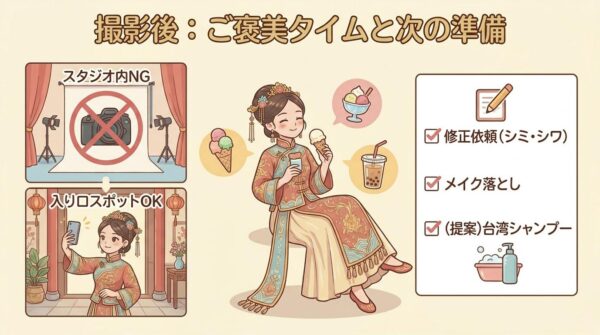 それぞれに良い思い出がありますが、多少なりとも大変な部分もありました。台湾で変身写真を体験してみたいと考えている方の参考になればと思います。