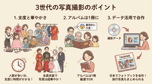 3世代の撮影は、基本的に家族写真と変わりありません。