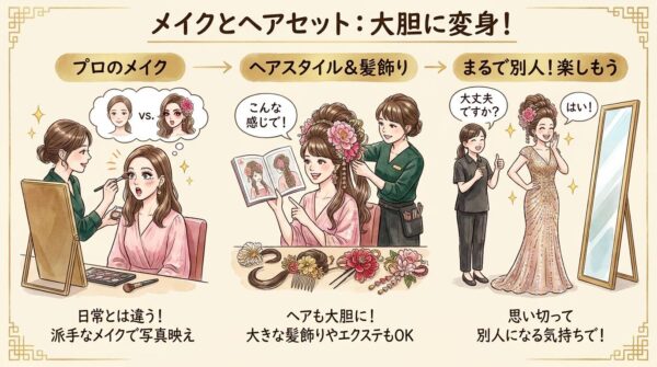 変身写真ですので、メイクはプロにお任せするのがおすすめです。