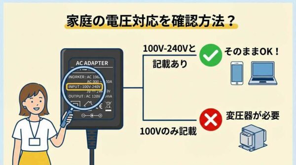 電圧が10V異なるため、精密機器や熱を発する家電を使用する際には事前の確認が欠かせません。