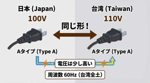 台湾は日本と同じプラグ形状ですが、電圧にはわずかな違いがあるため、変圧器が必要か正しく判断することが大切です。