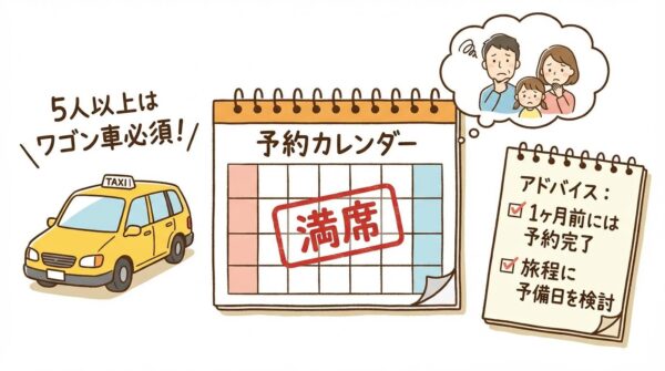 ここで一つ問題が。ワゴンサイズは希望していた日付がすでに満席になっていました。人数が多い場合は早めの予約が必須です!